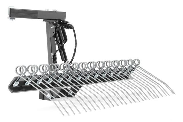 Stabilna i niezawodna zgrabiarka do użytku wraz z broną pazurową do wyrównywania żwiru i zbierania chwastów. Elektryczne podnoszenie i opuszczanie zgrabiarki sprawia, że jest ona ergonomiczna i łatwa w użyciu.