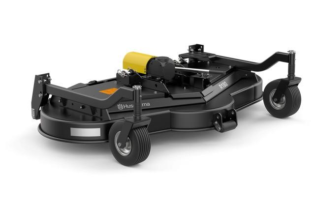 Husqvarna R180 to prefabrykowane urządzenie tnące 180 cm (71\") z wyrzutem tylnym. Wysokowydajne urządzenie do produktywnego koszenia dużych powierzchni i grubej trawy. Wał napędzany przez przekładnię kątową. Ręczna regulacja wysokości. Osprzęt wymaga przeciwwagi.